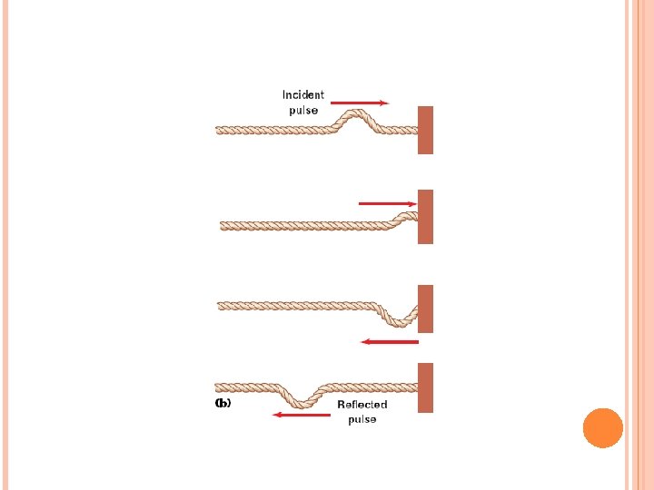 At a fixed boundary, waves are reflected and inverted If a rope is fixed at one end, when the pulse reaches the wall, the rope exerts an upward force on the wall The wall in turn, exerts an equal and opposite reaction force on the rope As a result, the pulse is inverted after reflection