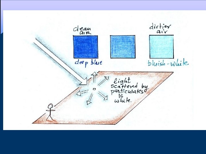 Ø Scattering of sunlight effects visibility – cleaner air = better visibility but more distance between you and the object = more scattering.