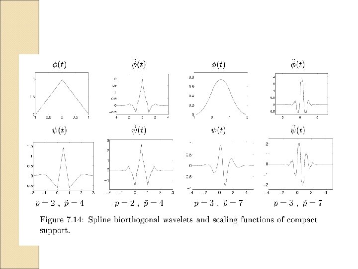 Biorthgonal Wavelets The dual story: ◦ Scaling eqns ◦ Admissibility ◦ Birothogonality conds: “linear constaints”