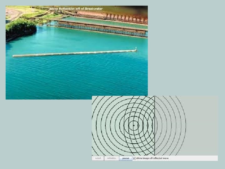 Reflection • Waves bounce off of cliffs, steep beaches, breakwaters, bulkhead or other structures that are straight. • Waves passes through incoming waves to produce an interference pattern.