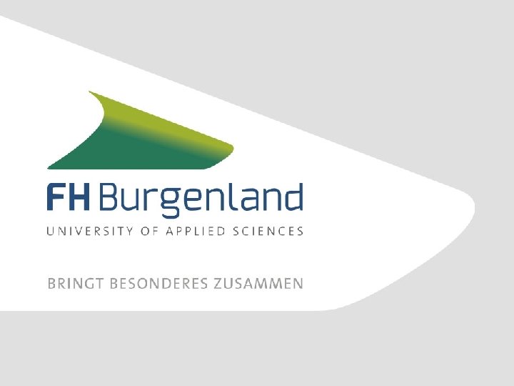 Organisation § Owner: Federal State of Burgenland § Mission: Study Programmes in accordance with the Bologna Process Applied research and development § Subsidiaries: AIM Austrian Institute of Management Akademie Burgenland Forschung Burgenland readyforhealth §