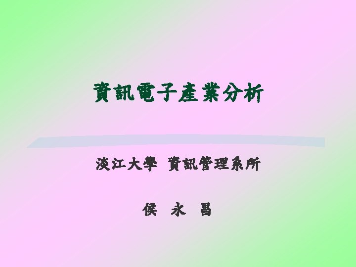 課程目標 § Technology: such as current technology, technological relations, technology trends among new products, replacement technology, technology trends. § Companies: such as basic data, company development, history, performance, major investments, competitive advantages, business strategy, potential competitors. 淡江大學資訊管理系侯永昌 5