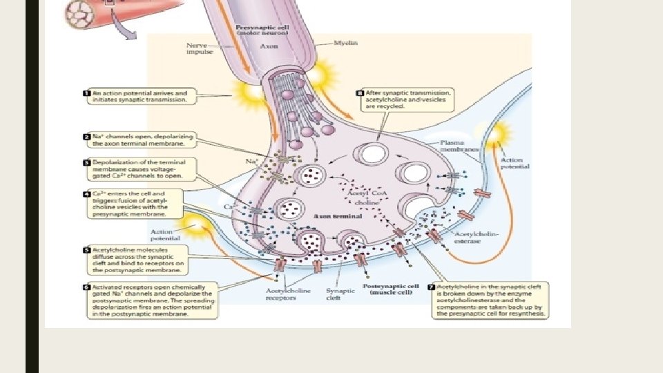 Neuromuscular Junction ■ Presents with slowly progressive or fluctuating signs. It may also present with bulbar palsy or ocular signs – Bulbar palsy refers to a range of different signs and symptoms linked to impairment of function of the cranial nerves IX, X, XI and XII, which occurs due to a lower motor neuron lesion in the medulla oblongata or from lesions of the lower cranial nerves outside the brainstem – – – Mixed upper and lower motor neurone pattern Bilateral proximal muscle weakness Loss of muscle bulk