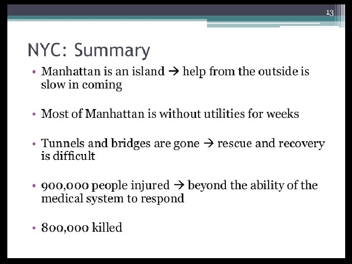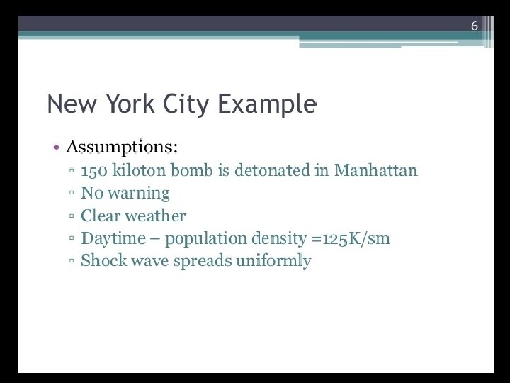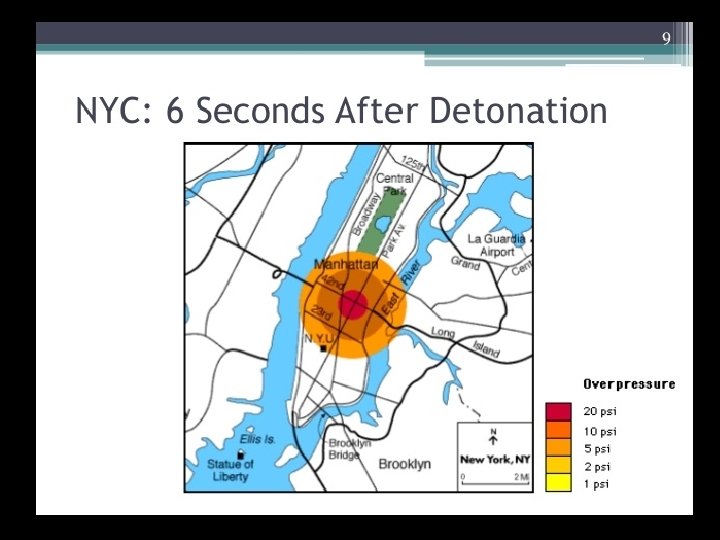 The Effects Of Nuclear Weapons • Nuclear weapons produce devastating and long-term effects on human and animal life, as well as the environments in which they live. These are the hardest of all types of weapons to make because the critical nuclear elements — plutonium and/or highly enriched uranium — are hard to come by, and are very expensive. Delivery Systems • These weapons are most likely to be delivered in the form of ballistic missiles or bombs dropped by flyover bombers. Terrorists could also cause accidents involving nuclear power plants, nuclear medicine machines in hospitals and vehicles used in the transportation of nuclear waste. • The size of an actual nuclear weapon can be quite small, and could easily fit into a large car or truck. That has sparked a fear among many experts that a nuclear warhead could simply be driven into a large city by terrorists and detonated by either a suicide bomber or by remote control.