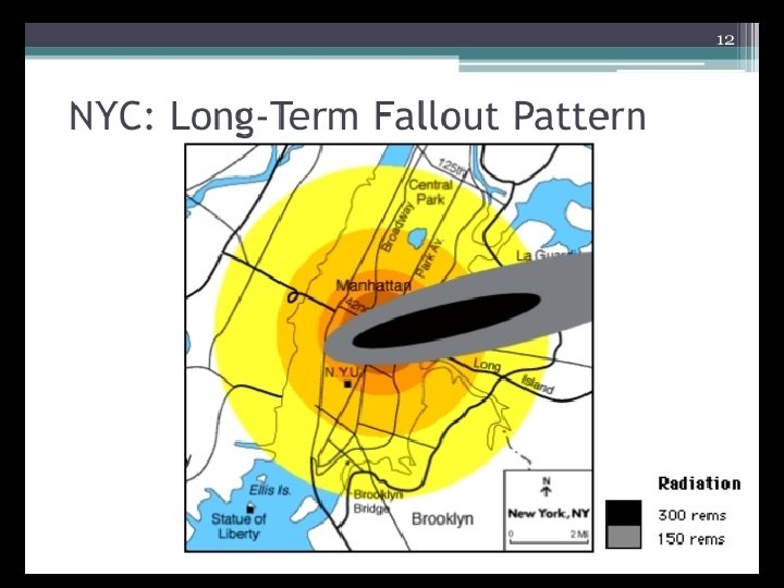 Radiological Weapons • The main radiological weapon is the ‘Dirty Bomb’ • Is a non-nuclear bomb with radioactive material included with the explosive • The explosion of this bomb isn’t nuclear, however the effects on people and property are very similar. • The main effects are radiation sickness, which usually leads to death. • These bombs are thought to be the first choice of many terrorists, as they are relatively easy to acquire components and construct, compared to nuclear bombs.