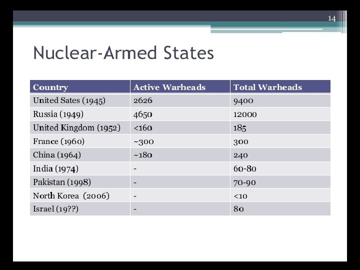 Who Has Them? • The United States has a stockpile of 10, 600 nuclear weapons and 103 power plants. Russia has a similar supply. The United Nation's ‘International Atomic Energy Agency’ oversees 900 of the world's nuclear facilities. Pakistan and India have both exploded nuclear devices in test blasts. Israel and North Korea are two countries believed to possess nuclear weapons. • Nuclear weapons continue to be a proliferation concern, particularly when North Korea recently announced it was continuing its nuclear arms program, and withdrew from the ‘International Nuclear Non-proliferation Treaty. ‘ • One worry of the United States is not so much that North Korea itself will use what weapons it has, but that it will have no qualms about selling them to the highest bidder, whether that bidder be a nation such as Iraq, which sponsors terrorism, or individual terrorist groups such as Al-Qaeda.