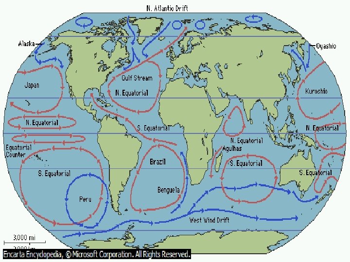 Ocean Currents These are the movements of the ocean. The temperature of the water affects the amount of rain a place has. Warmer water tends to cause more rain. The water near the equator is warmer so these places have more rain and often cyclones.