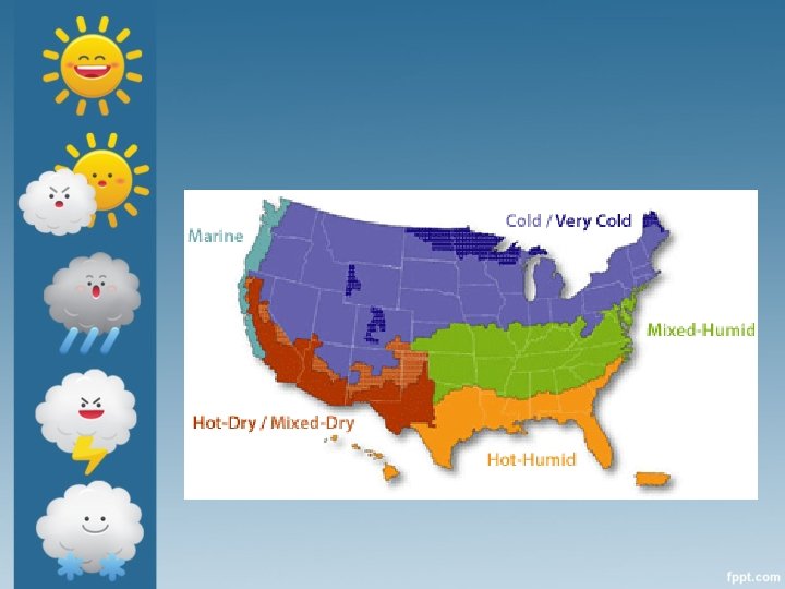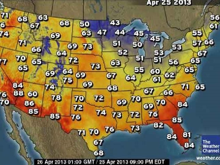 What is the difference in WEATHER & CLIMATE? • Weather – The condition of earth’s atmosphere at a particular time & place (daily) • Climate – The characteristics of weather conditions in a specific area over a LONG PERIOD OF TIME • 20 years