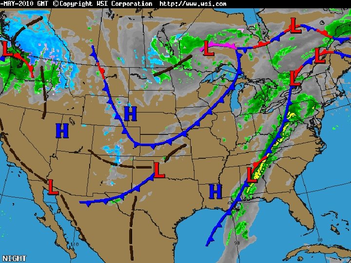 Low Pressure System • Formed when air moves all the way around a low-pressure center • Brings stormy weather • Lousy (weather) = LOW