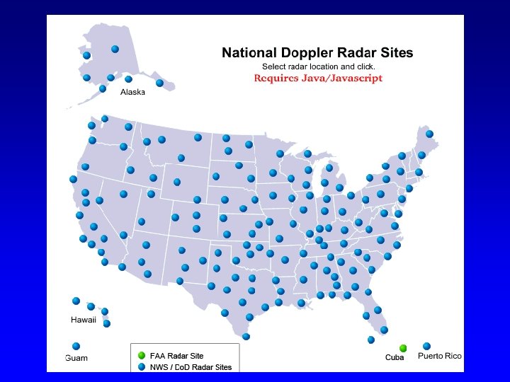 In the late 1980 s, the NWS put in a network of Doppler Weather Radars NEXRAD WSR 88 D (Weather Surveillance Radar 88 Doppler)