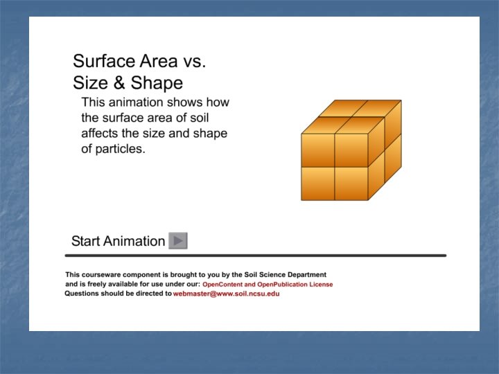 Important! What happens to the erosion rate when you increase the surface area? n Physical weathering increases the surface area of rocks/minerals. n Taking a rock/mineral and breaking it up into smaller pieces causes it to take up more space (surface area) and will eventually increase the rate of chemical weathering to occur.