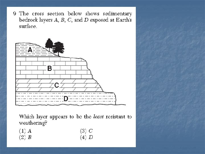 WHICH LAYER IS MORE RESISTANT TO WEATHERING? LEAST RESISTANT? A C B D
