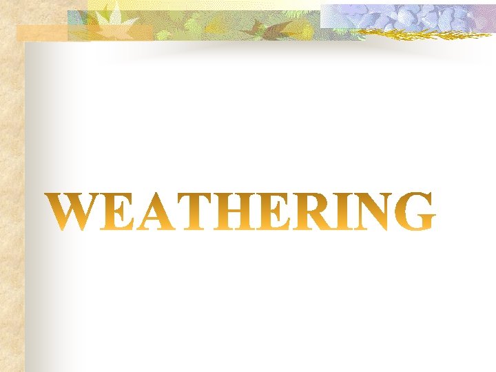 I. Physical Weathering: - rocks break into pieces - changing size and shape - but not their composition.