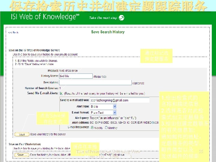 保存检索历史并创建定题跟踪服务 Title of Presentation (Edit using View Menu > Header and Footer) 32