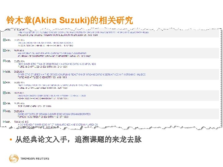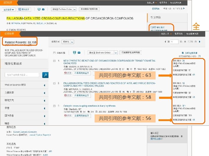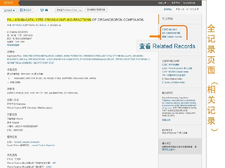 Web of Science中的相关记录 论文乙 论文甲 Synthesis of Amino Acids Synthesis of Amino Acids Synthesis and/or collection of Synthesis and/or collection of amino acids is critical for cell survival. They not only serve as the building blocks for proteins but also as starting points for the synthesis of many important cellular molecules including vitamins and nucleotides. A B C Synthesis and/or collection of amino acids is critical for cell survival. They not only serve as the building blocks for proteins but also as starting points for the synthesis of many important cellular molecules including vitamins and nucleotides. D E F