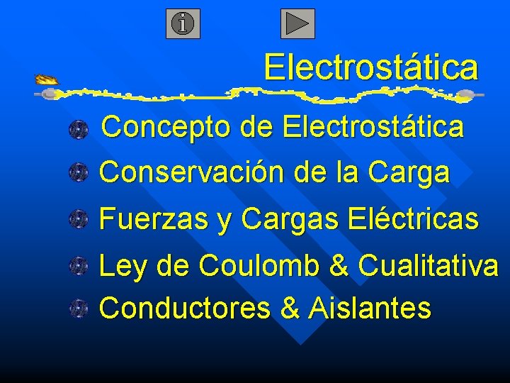 Electrostática Concepto de Electrostática Conservación de la Carga Fuerzas y Cargas Eléctricas Ley de Coulomb & Cualitativa Conductores & Aislantes