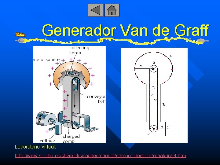 Generador Van de Graff Laboratorio Virtual: http: //www. sc. ehu. es/sbweb/fisica/elecmagnet/campo_electrico/graaf. htm