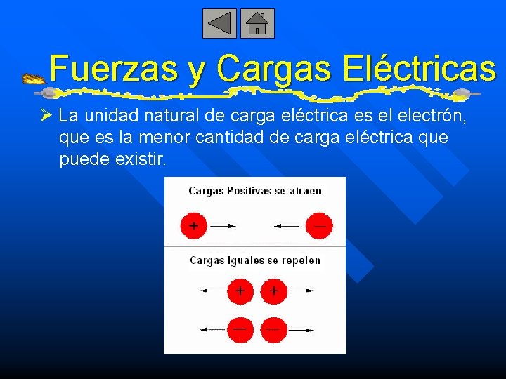 Fuerzas y Cargas Eléctricas Ø La unidad natural de carga eléctrica es el electrón, que es la menor cantidad de carga eléctrica que puede existir.