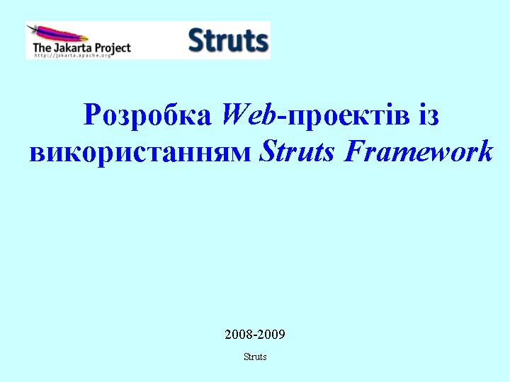 Файл struts-config. xml (фрагменти) (2/2) <action path="/insert. Student" type="net. cyb. Insert. Student. Action" name="student. Form" Об'єкт-форма для Action Область дії об'єкта-форми (об'єкт-форма scope="request" зберігається протягом запиту) validate="true" Валідація проводиться! input="/student. Form. jsp" JSP з формою для повторного уведення при наявності помилок > <forward name="success" path="/confirmation. jsp"/> </action-mappings>. . . Метод validate об'єкта-форми викликається фреймворком перед делегуванням запитів Action-об'єкту <message-resources parameter="Message. Resources" null="false"/> </struts-config> Struts 20