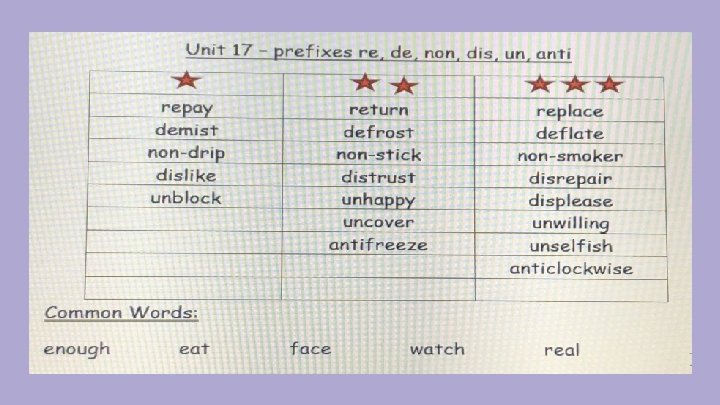 v LITERACY Spelling : *Word lists on next slide* LI: To identify spelling patterns within words and spell these words correctly. Ø Red/Blue/Green Group: Prefixes - these are letters that are at the beginning/start of root words. Ø Your spelling activities today are ‘Wednesday’s activities on the Spelling Grid for this week* *Link for spelling words/activity grid on class blog. 7