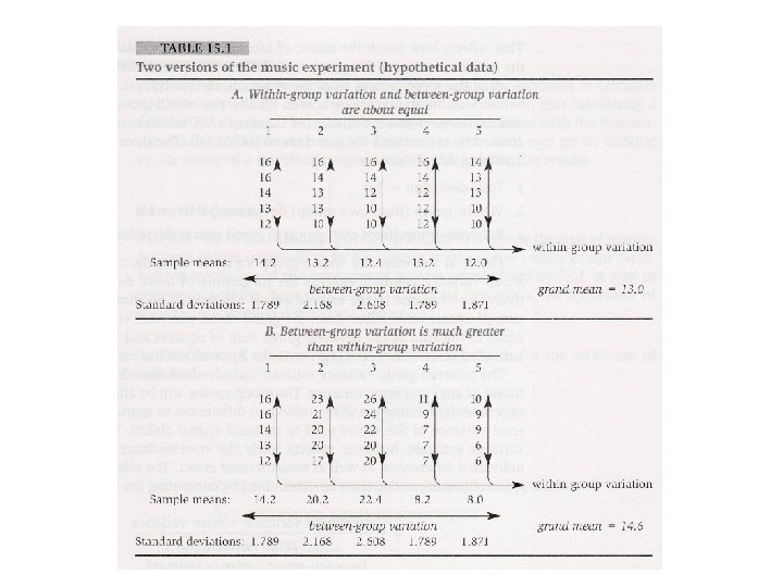 Between-group variance estimate F= within-group variance estimate MSB = SSB / df. B MSW = SSW / df. W where df. B = k-1 (k = number of groups) df. W = N - k