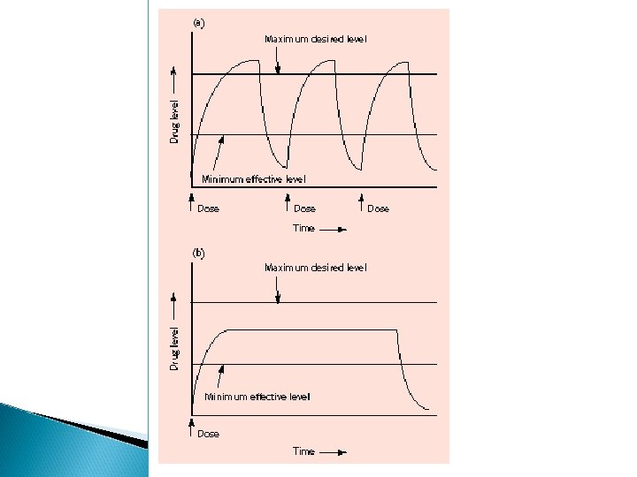 Some additional interesting points regarding oral adm � Drugs that are destroyed by gastric juice or cause gastric irritation can be administered in a coating that prevents dissolution in acidic gastric contents (however may also preclude dissolving in intestines) � Controlled – Release Preps -