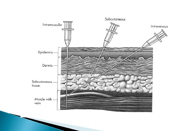 Intramuscular � absorption more rapid than SC ◦ less chance of irritation; � ways to speed up or slow down absorption � depot injections -