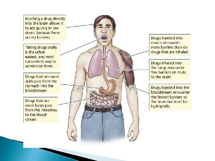oral administration � disadvantages ◦ ◦ of oral administration: vomiting stomach distress variability in dose first pass metabolism �ex. buspirone (Bu. Spar) – antianxiety drug � 5% reaches central circulation and is distributed to brain