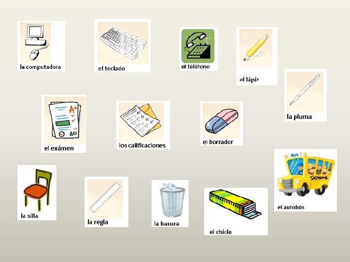 (bag) (folder) (notebook) (wallet) (un marcador)