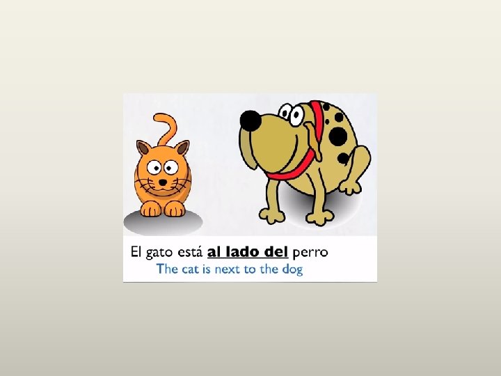 Prepositions English Spanish Examples at, to a of, from de to/in/on the a + el = al a la al gimnasio a la oficina of the de + el = del de la del gimnasio de la oficina in, on en