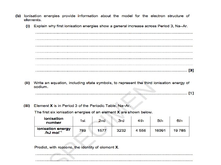 Week 5 Define first ionisation energy and successive