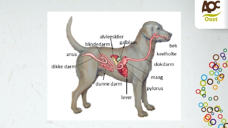 Tekenen • Opdracht: teken samen met je groep alle organen v/d spijsvertering in de hond en noteer de functies.