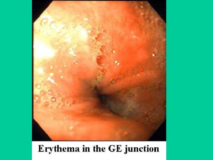 • The distal esophageal mucosa was slightly erythematous without focal lesions