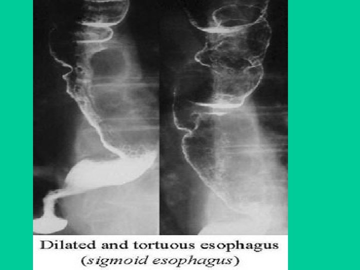 • To further differentiate between these two potential causes, a cine-esophagram was obtained. • It demonstrated a significantly dilated esophagus without primary peristalsis