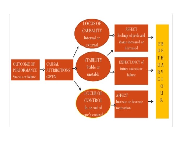 • The out come of a skill will cause a performer to make an attribution of why it failed or succeeded. • The reason for failing or succeeding could be internal (e. g. ability) or external (e. g. the environment) • Perosnality will play a part in whether failing demotivates or motivates them to do it again. (e. g. low or high NAF). • Also if the skill was out of the performers control or not will affect how motivated or unmotivated they are.