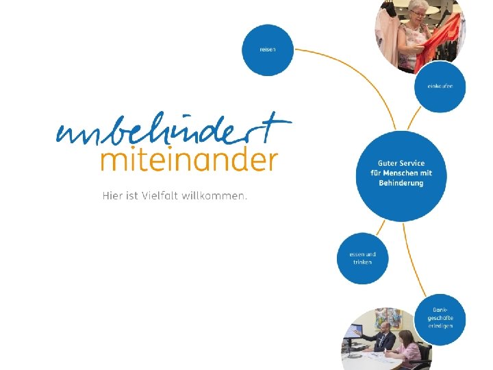 Menschen mit sogenannter geistiger Behinderung Was sollten Sie beim Kundenkontakt beachten? • Menschen mit kognitiven Einschränkungen wirken in manchen Fällen in Auftreten und Sprache auch im Erwachsenenalter kindlich. Begegnen Sie ihnen stets „auf Augenhöhe“. Sprechen Sie sie (bei altersbetreffenden Zweifeln) mit „Sie“ an. Verwenden Sie keine kindliche Sprache. • Reden und schreiben Sie leicht verständlich. Formulieren Sie in Leichter Sprache (z. B. kurze Sätze, keine Fremdwörter ohne Erklärung). • Sprechen Sie Menschen mit kognitiven Einschränkungen nicht das Recht auf Selbstvertretung ab. Wenden Sie sich – auch wenn eine Assistenzperson anwesend ist – direkt an den behinderten Kunden. • Geben Sie Menschen mit kognitiven Einschränkungen die notwendige Zeit. Warten Sie ab, bis Sie eine Antwort erhalten. Erklären Sie langsam und gestalten Sie Abläufe so, dass genügend Zeit bleibt, zu reagieren. • Vergewissern Sie sich, dass der Kunde Ihre Worte richtig verstanden hat. Vielen Menschen mit kognitiven Einschränkungen fehlt der Mut bei Verständnisschwierigkeiten nachzufragen. → Klicken Sie zur nächsten Seite