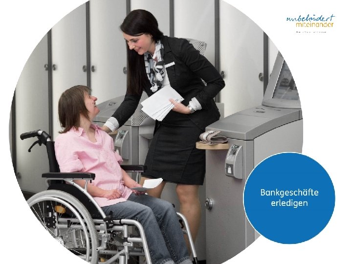 An diesen Merkmalen sind Menschen mit sogenannter geistiger Behinderung häufig erkennbar. • • • Mitgeführter Rollstuhl, Gehstock, Krücken oder weitere Mobilitätshilfen Undeutliche, schwer verständliche Sprache (z. B. bei einem sogenannten Spasmus) Eingeschränkte Gehfähigkeiten, auffällige Körperhaltung → Klicken Sie zur nächsten Seite