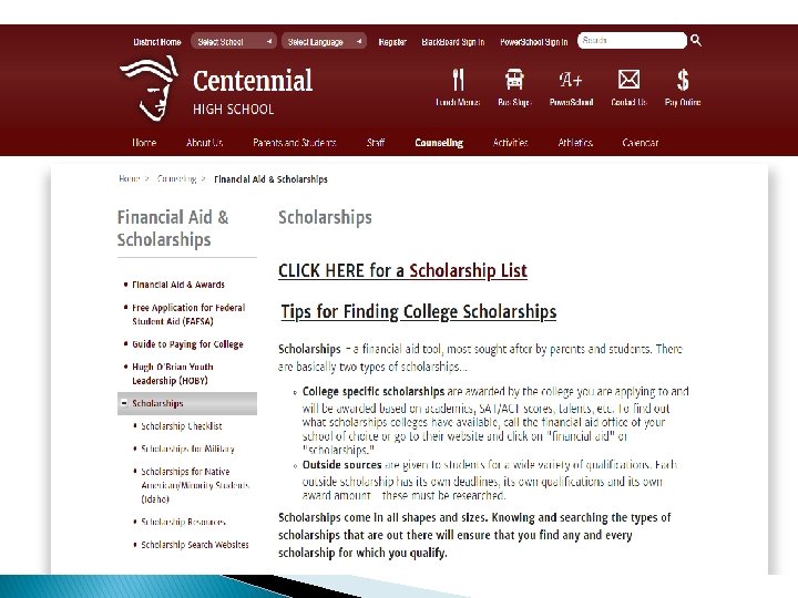 Scholarships on the CHS website www. westada. org/chs Ø Click on Counselors Ø College/Career Information Ø Scholarships