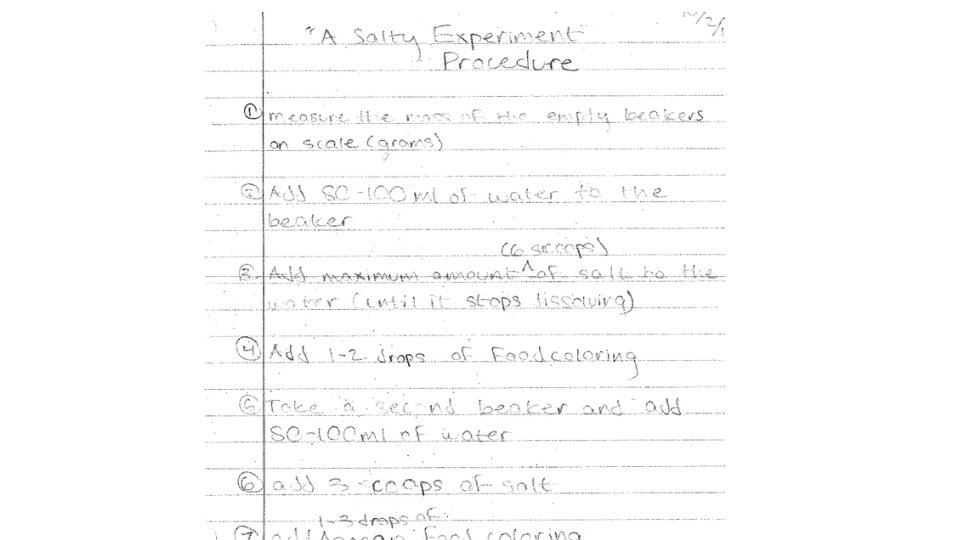 What does it mean to be detailed? • We MUST include amounts, cannot say I am adding water, need to say how much of a substance is being added! • Need to state when, where, and how things are being added! • Example: PB&J -> -Spread the peanut butter on the bread (Where on the bread? All of it? Spread with what? Your hand? ) NEED to be as specific as possible, so this would make sense to someone who is just walking into the room and has no idea what is going on!