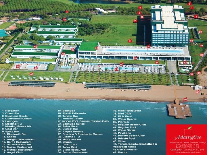 ADDRESS Hotel: Adam & Eve Hotel 5 * Address: Adam & Eve Hotels Belek Antalya TURKIYE Tel. : 90 242 715 24 44 Fax: +90 242 715 27 70