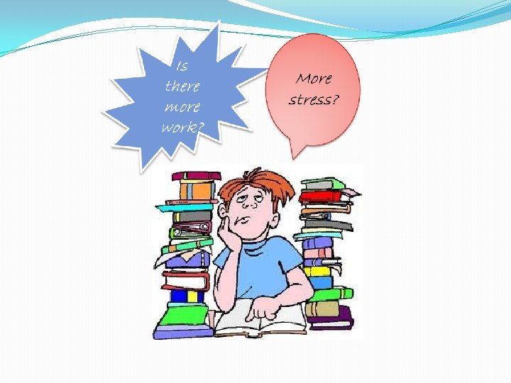 Back to school (First day mania) �Anxious new freshman �New sleeping and awakening time �New classes �New teachers �New schedules (daily routine) �New acquaintances (shy, friendly) �New lockers (open/won’t open) �New records (office, clinic) �New school supplies (notebooks, textbooks, pens) �New surroundings (familiarize)