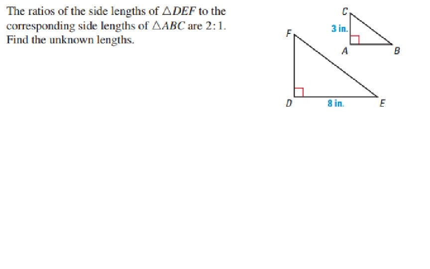 Scale Factor The ratio of the lengths for two corresponding sides E 10 in ABCD ∼ EFGH F A 16 in B 8 in D H 5 in G C