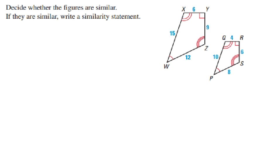 Similar Polygons with all corresponding angles ≌ and all sets of sides proportional B A F E H D C ABCD ∼ EFGH If ∠A ≌ ∠E & ∠B ≌ ∠ F ∠ C ≌ ∠G & ∠ D ≌ ∠H G Then “ABCD is Similar to EFGH”