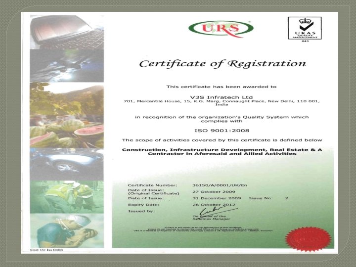 QUALITY • Having ISO 9001: 2008, ISO 14001: 2004 & OHSAS 18001: 2007 (EMS) certification together • As a part of Quality Management System, strict Quality Control at all our Projects for incoming materials as well as processes • Control of Monitoring and Measuring Devices and their timely calibration