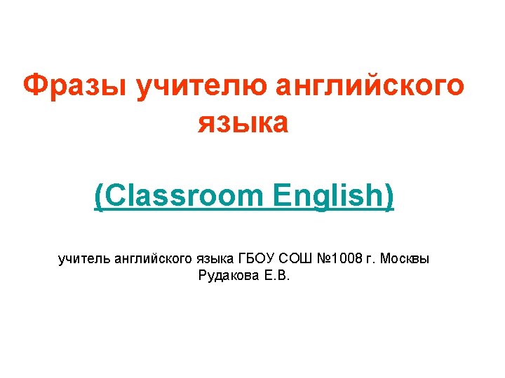 Во время занятия • • • • Are you ready? Who wants to go first? We’ll learn how to … Open your books at page … Turn to page … Read the directions to exercise (3). Say after me. Who would like to read? Everybody work individually. Copy this. Take notes. Make a sentence. Memorize this.