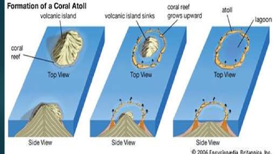 Atoll lagoons: Atoll lagoons from as coral reefs grow upward while the island that the reefs surrounding subside, until eventually only the reefs remain above sea level. Unlike the lagoons that from shoreward of fringing reefs , atoll lagoons often contain some deep portions.