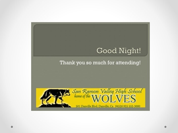 Welcome Freshman! Class of 2021 San Ramon Valley High School Home of the Wolves