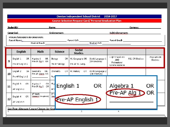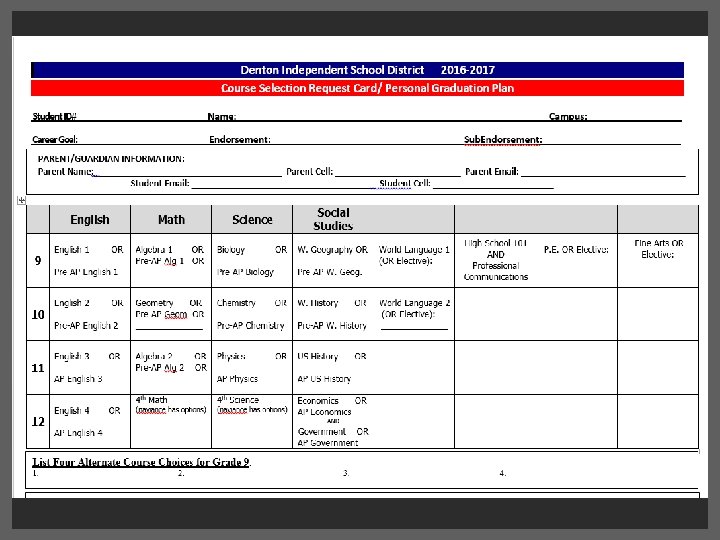 The student and parent should sign the PGP acknowledging the endorsement choice and schedule change policy