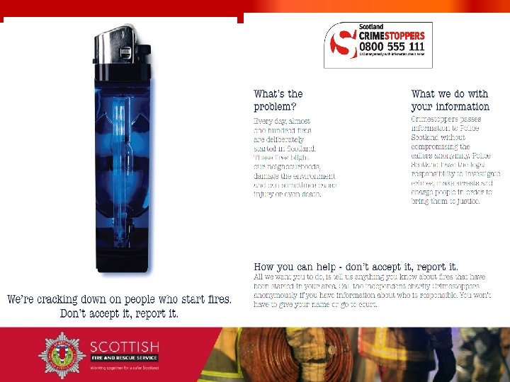 Preventative Measures • • • C. C. T. V. Neighbourhood watch Community Action Teams Police Scottish Fire & Rescue Crimestoppers
