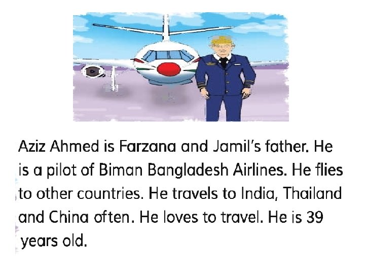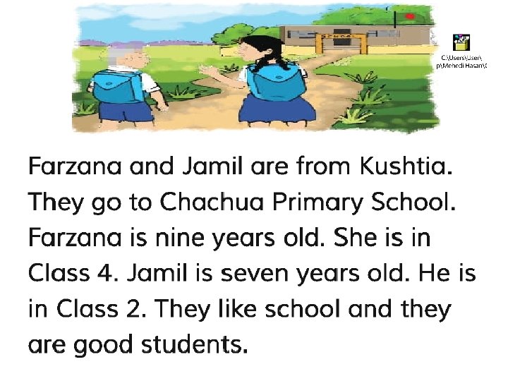 Group Work Write answer to the following questions: 1. What class Jamil read in? 2. How old their mother? 3. Where do they read? Read the statements and write true of false. 1. Farzana is nine years old. 2. They do not like school. 3. Rehana Parvin is 24 years old. Fill in the blanks: 1. Farzana and Jamil are from ……. . . 2. Jamil is ……years old. 3. …… is a doctor.